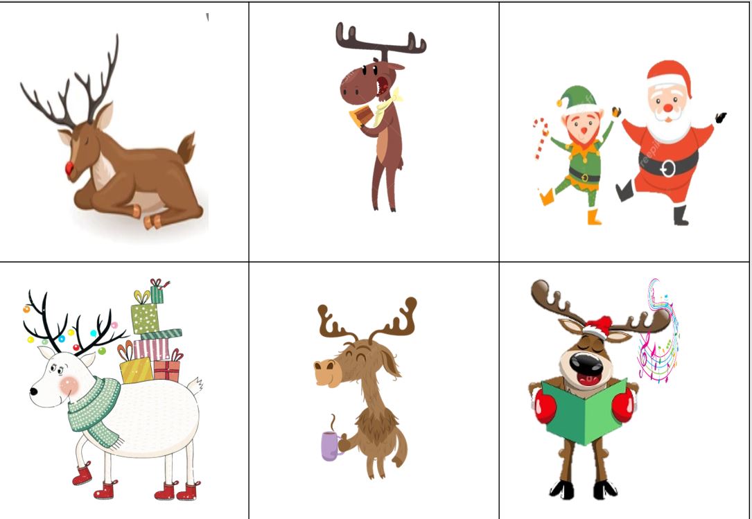 Je m'appuie donc sur 18 images supports avec 3 personnages différents: le père noël, le renne de Noël et le lutin de Noël. Chacun de ses personnages dort, boit un chocolat chaud, mange un ou des gâteaux, chante une chanson, danse avec un des autres personnages,porte des cadeaux. Mais avec une même image plusieurs phrases plus ou moins complexes peuvent être écrites. Ainsi on peut rester sur des phrases très simples: Le Père Noël boit, un peu plus complexe: Le Père Noël boit un chocolat, et avec certaines on peut même introduire une préposition: le Père Noël dort dans un lit, le Père Noël danse avec le renne.